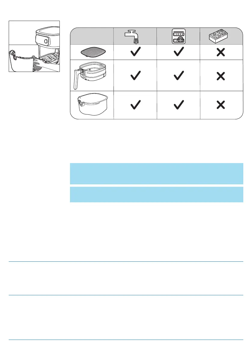 5 Curăţă sertarul şi interiorul aparatului cu apă fierbinte şi un burete neabraziv.
