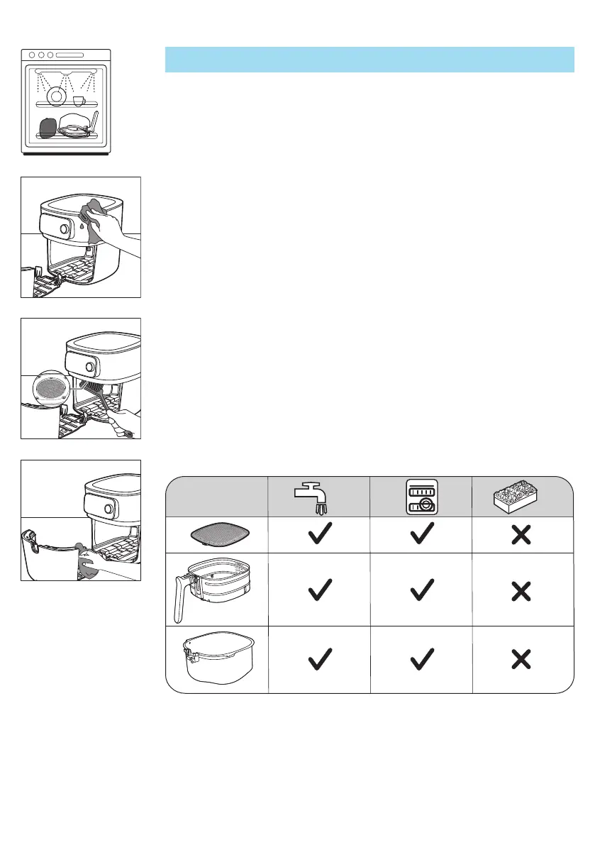 5 Predal in notranjost aparata očistite z vročo vodo in gladko gobico.