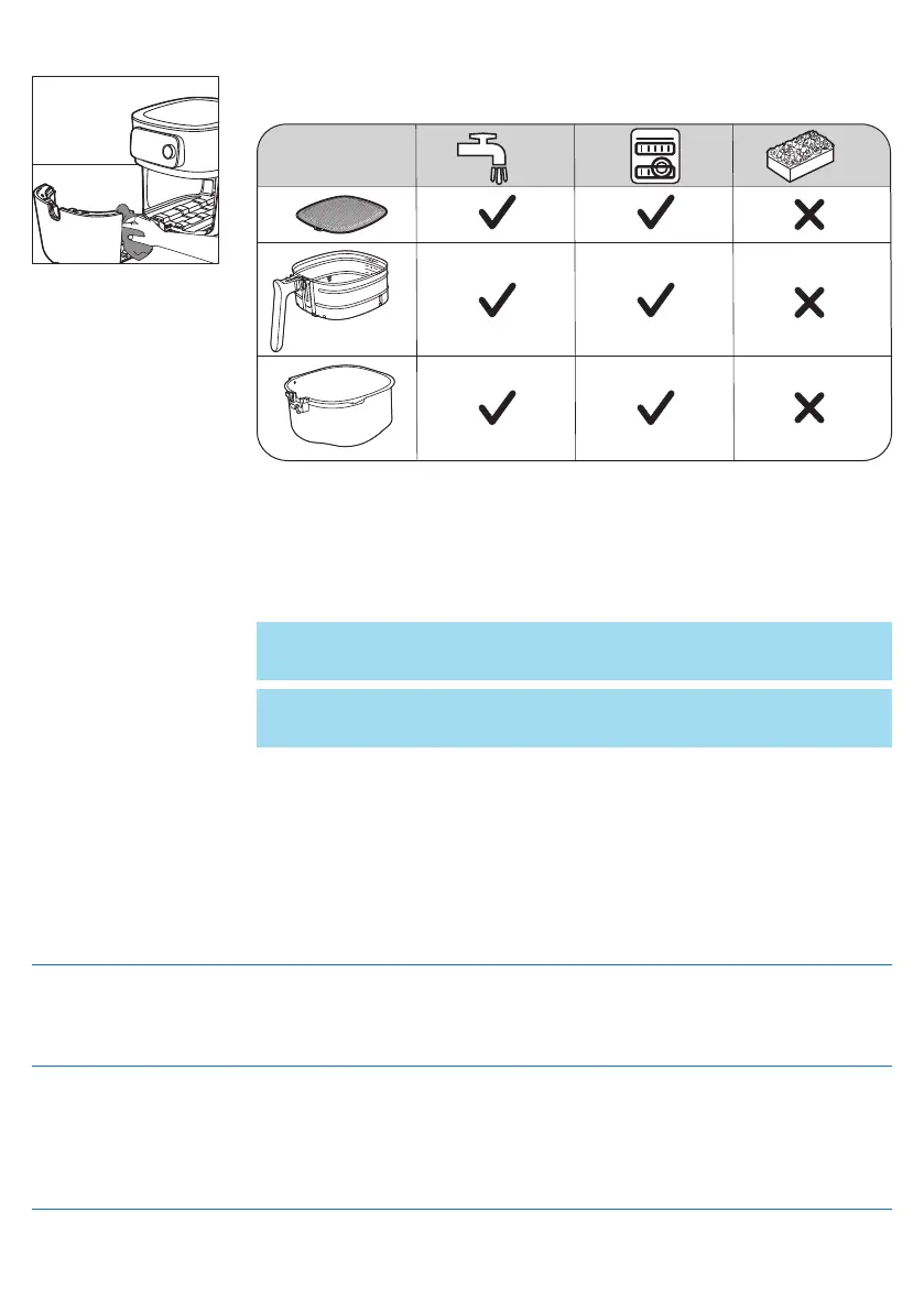 Huomautus: Kanna Airfryeria aina vaakasuorassa. Varmista, että pidät kiinni