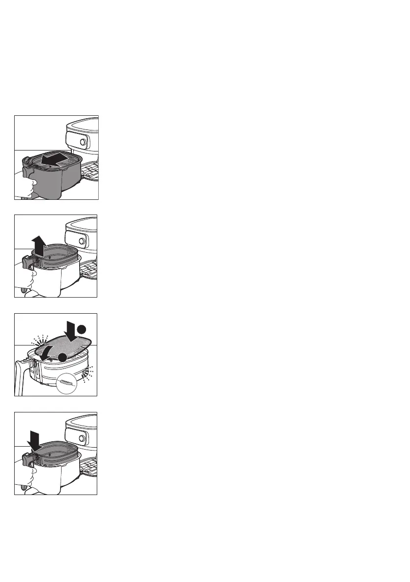 на кошницата. Натиснете мрежестото дъно, докато се застопори (да