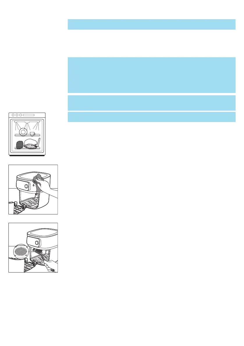 Совет: Ако остатоци од храна се залепат на тавата или корпата, можете