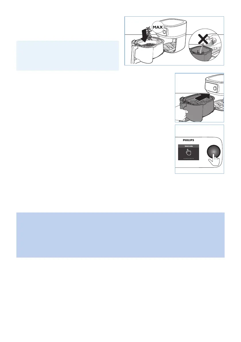 • Never use the pan without the basket in it. If you heat up the appliance