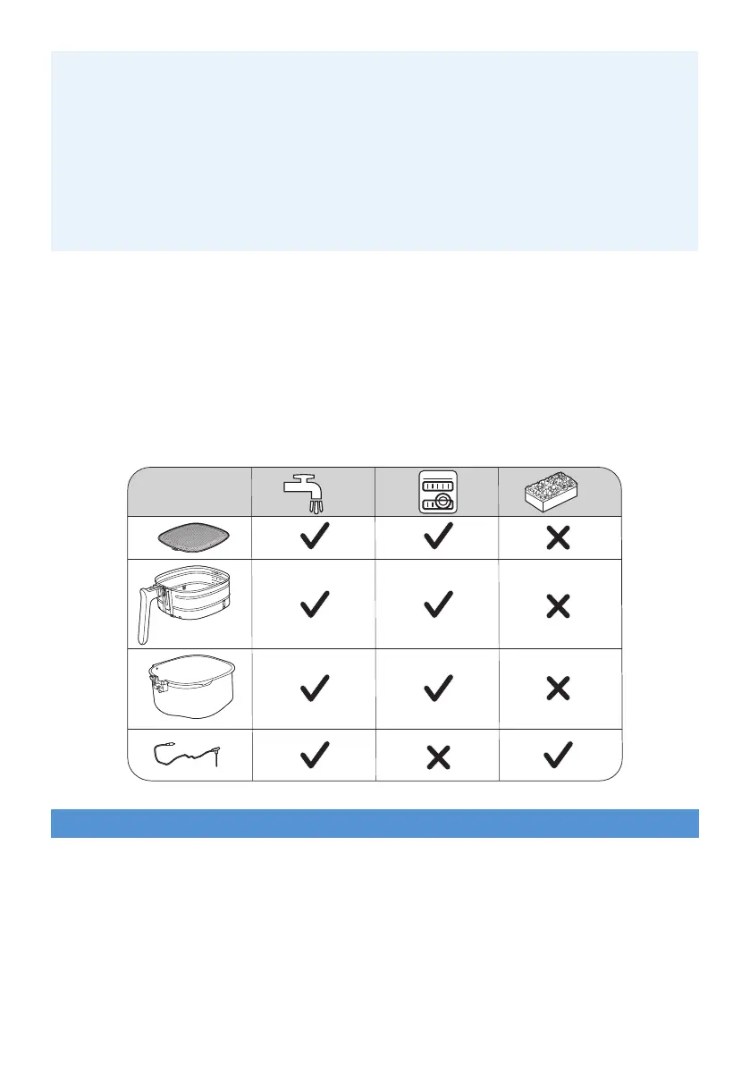 • If food residues stuck to the pan or basket, you can soak them in hot water