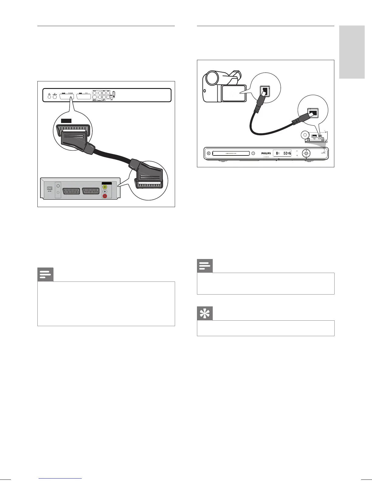 1 Connect a scart cable (not supplied) from