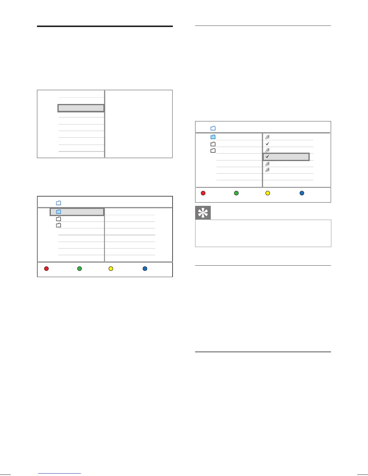 4 Select a fi le, then press the Red button