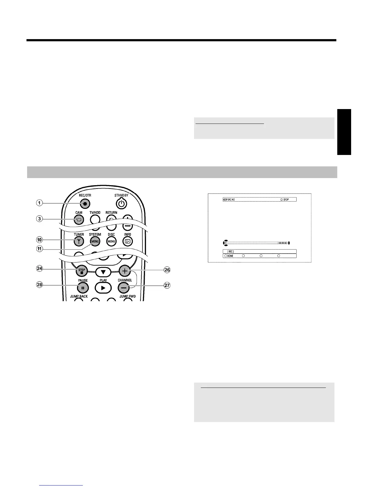 Select the recording mode (button TUNER 0 , button SYSTEM