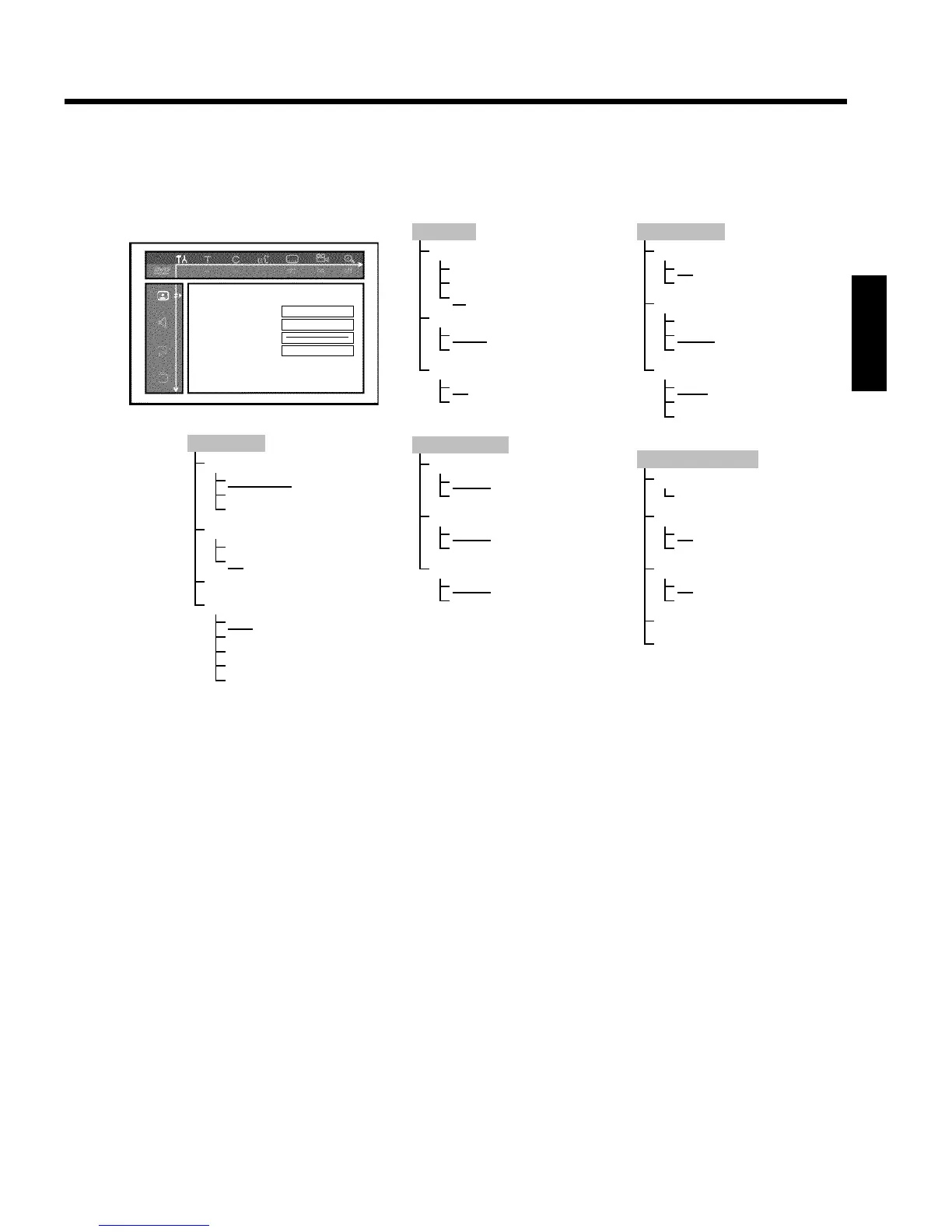 The following structure shows the menus which can be called up using DISC MENU B and then SYSTEM MENU A .
