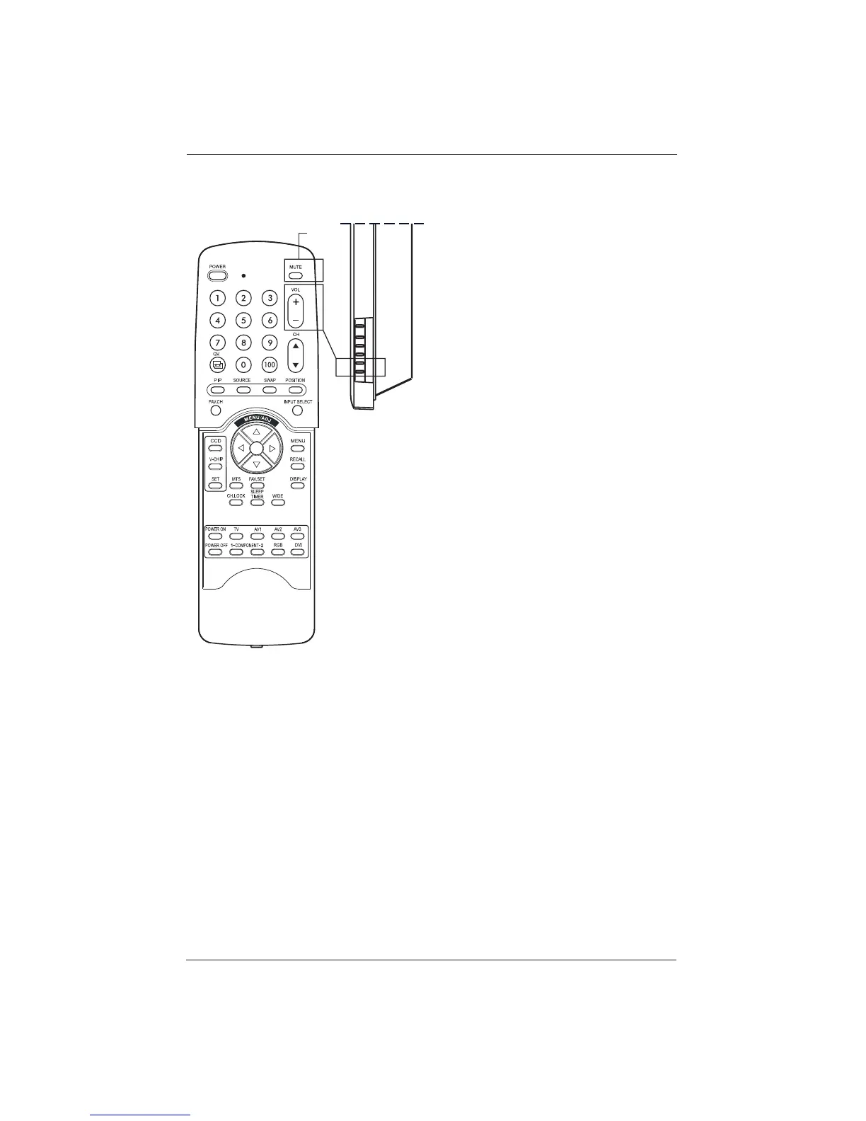 the MUTE button or the VOLUME +/-