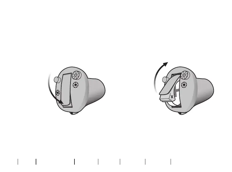 Note: Open the battery door fully to make sure the hearing aid does not drain the battery fully and to allow air