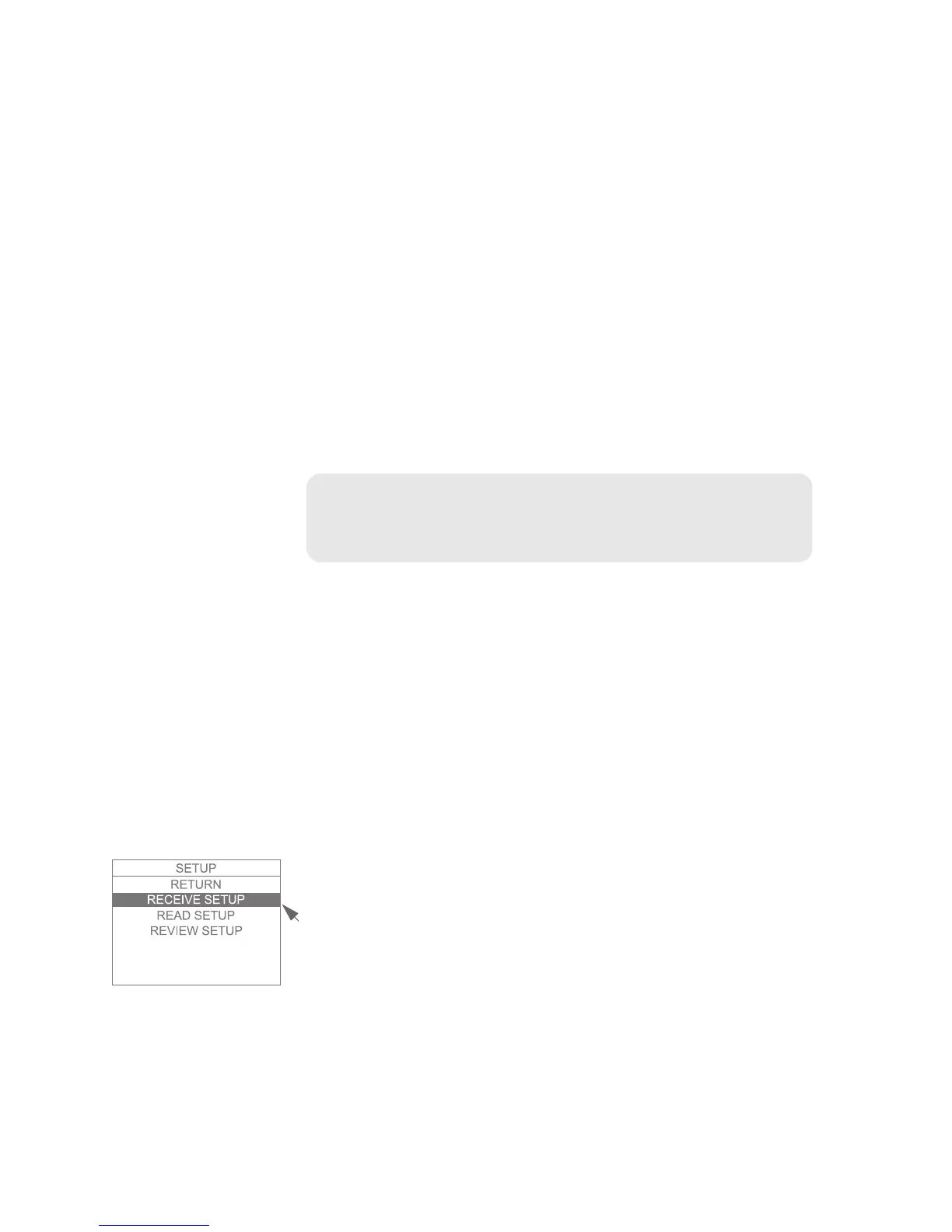3. Select RECEIVE SETUP from the setup menu: