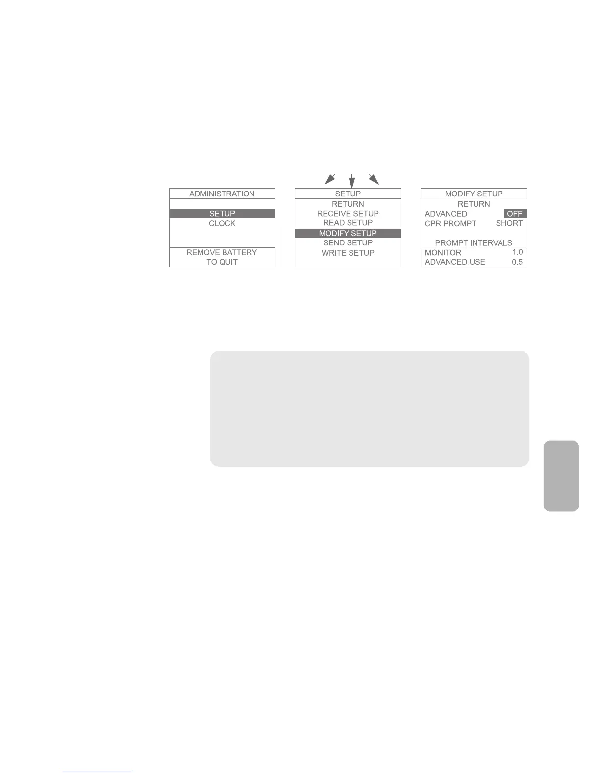 menu of the MODIFY SETUP menu.