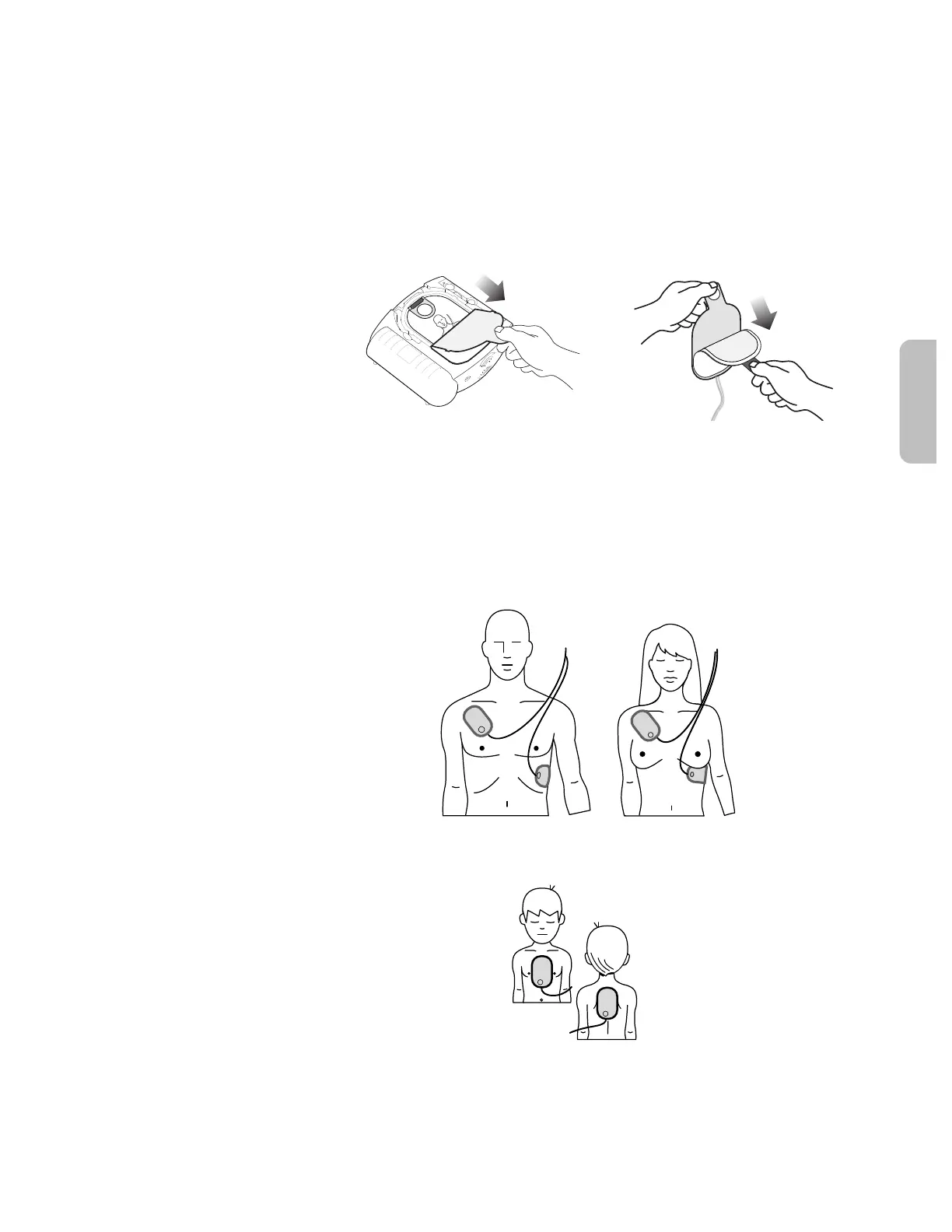 Peel one pad off the liner. Place the pad on the patient’s bare skin, exactly as