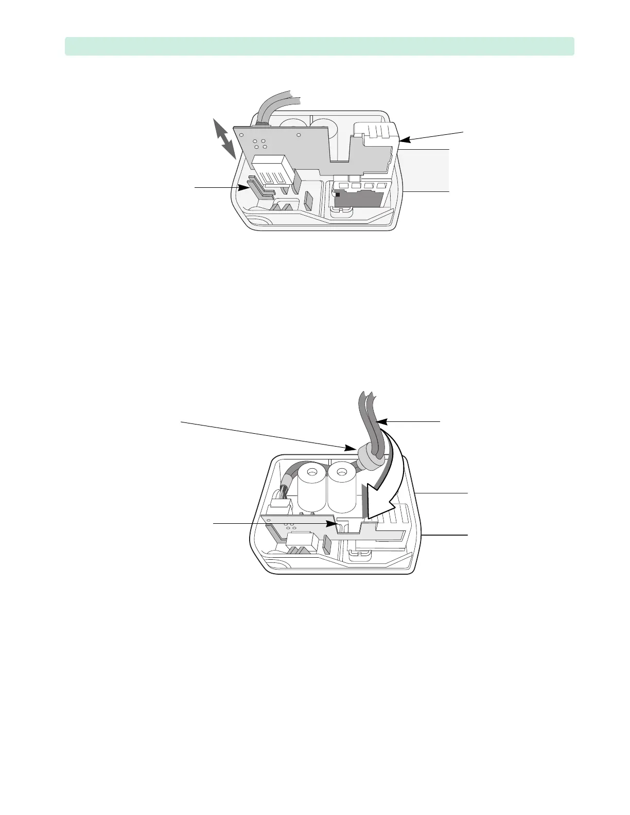 4 Wrap the RFU-and-USB cable around the plastic standoffs and guide through the cut-out.