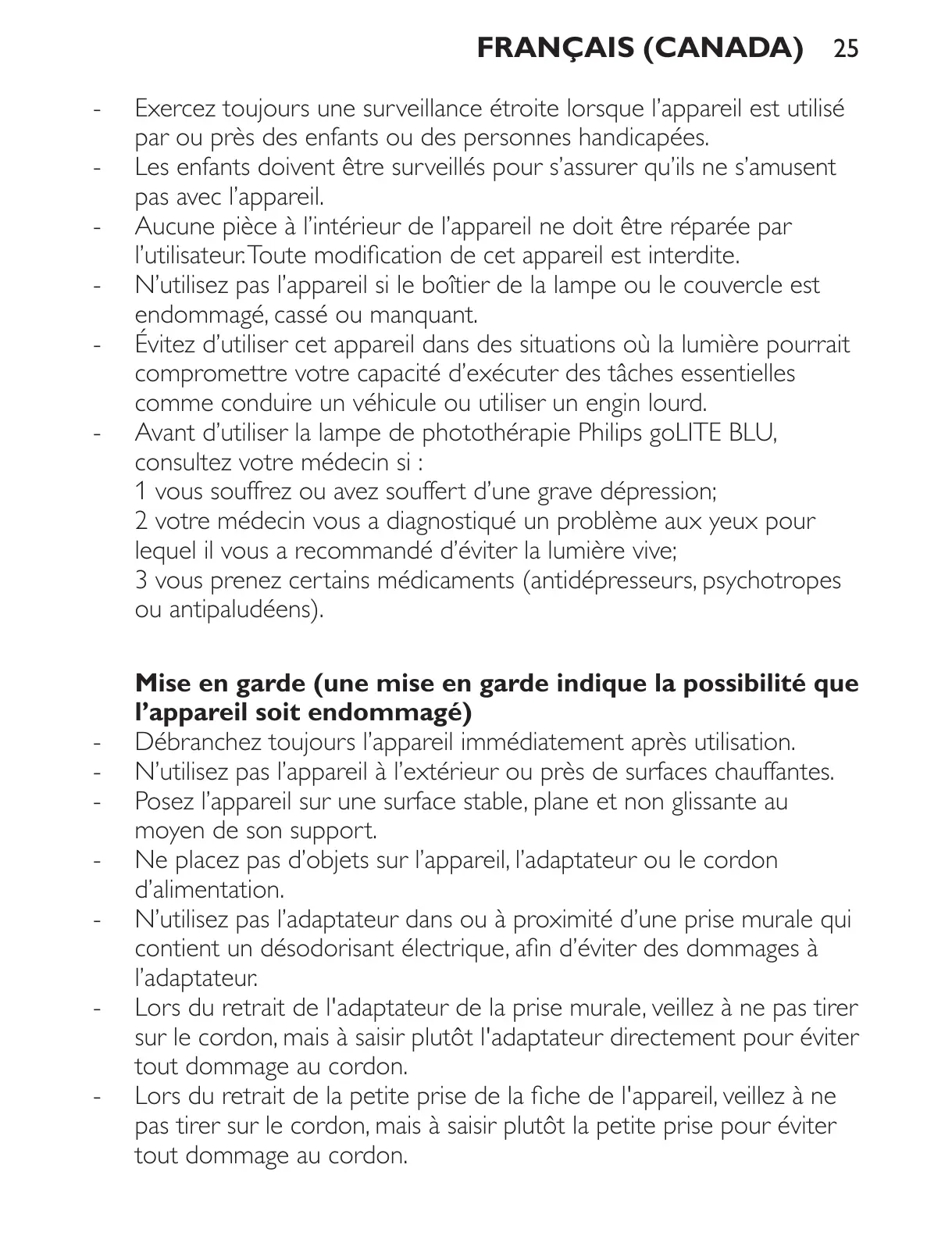 - Avant d’utiliser la lampe de photothérapie Philips goLITE BLU,