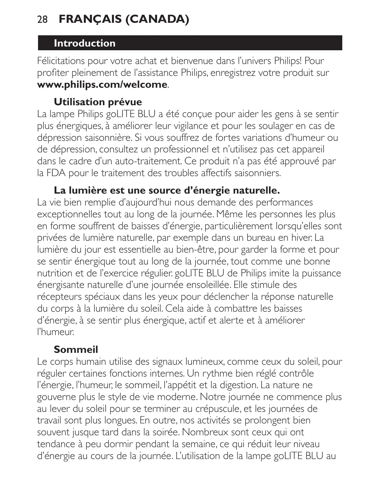 nutrition et de l’exercice régulier. goLITE BLU de Philips imite la puissance