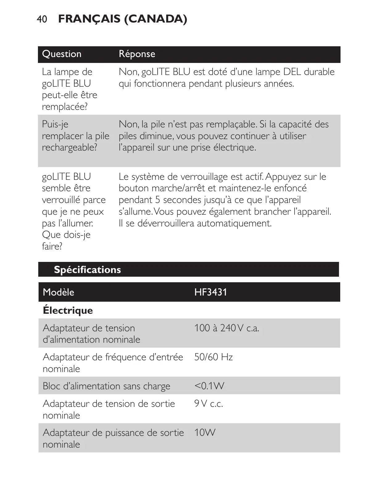 Non, goLITE BLU est doté d’une lampe DEL durable