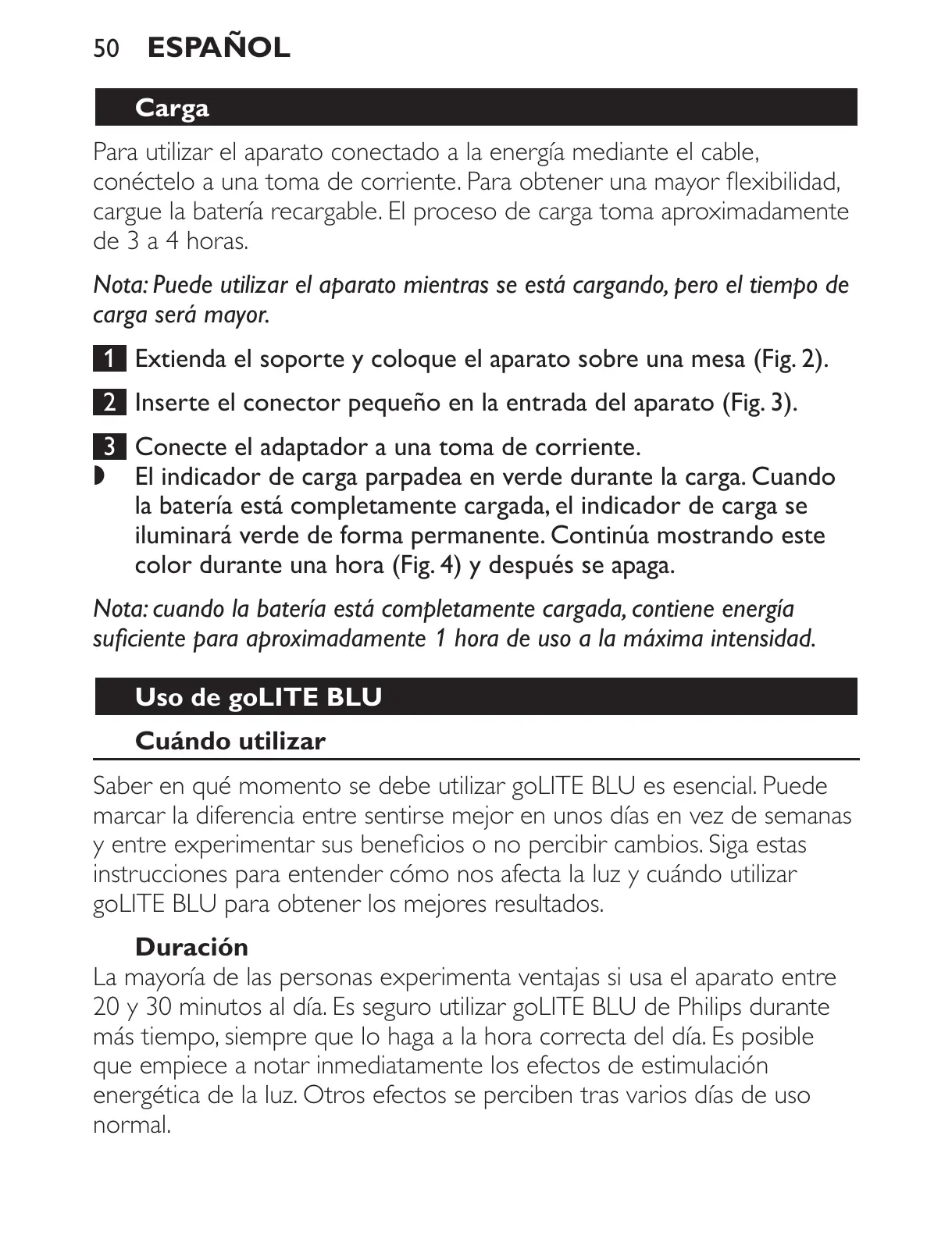 20 y 30 minutos al día. Es seguro utilizar goLITE BLU de Philips durante
