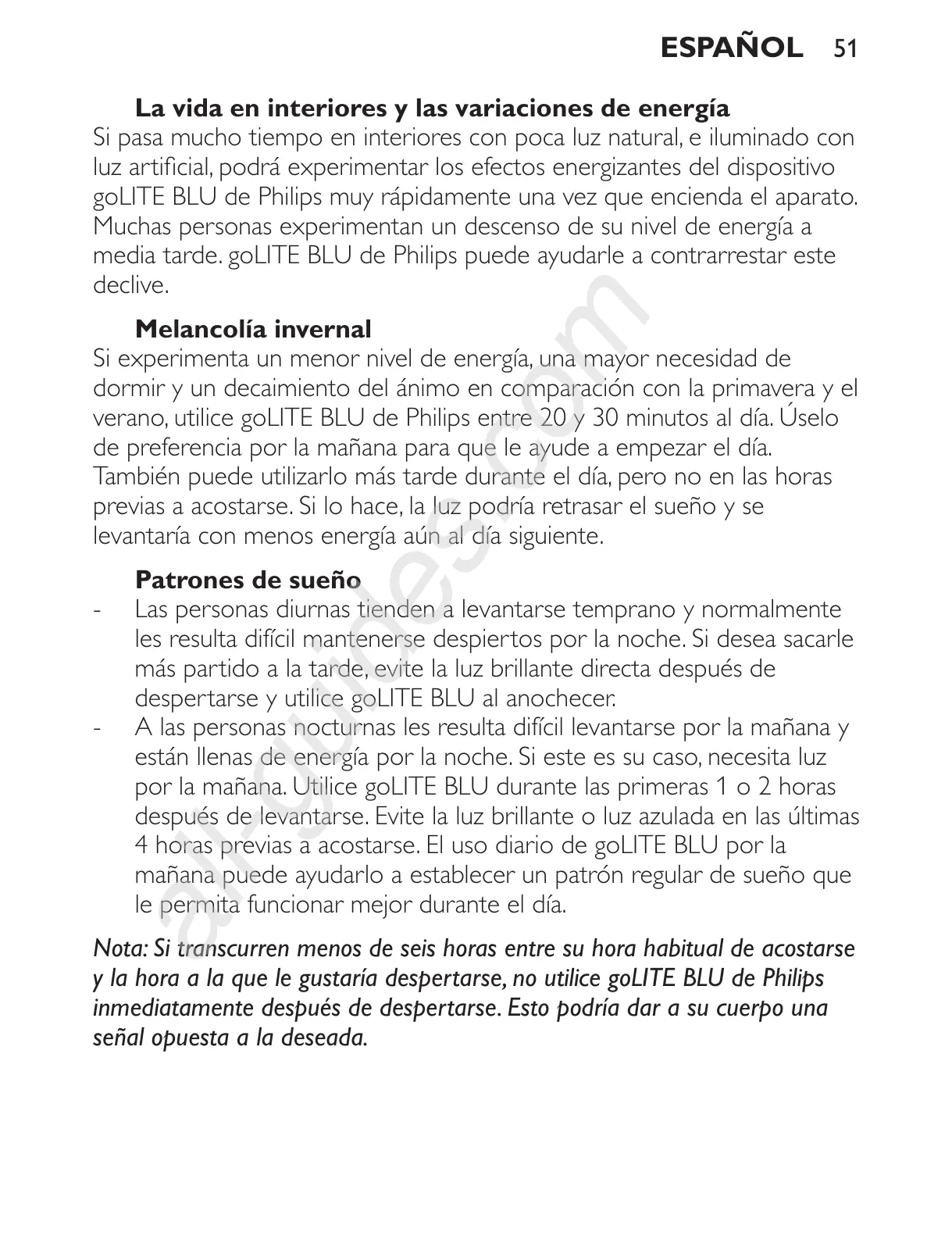 por la mañana. Utilice goLITE BLU durante las primeras 1 o 2 horas