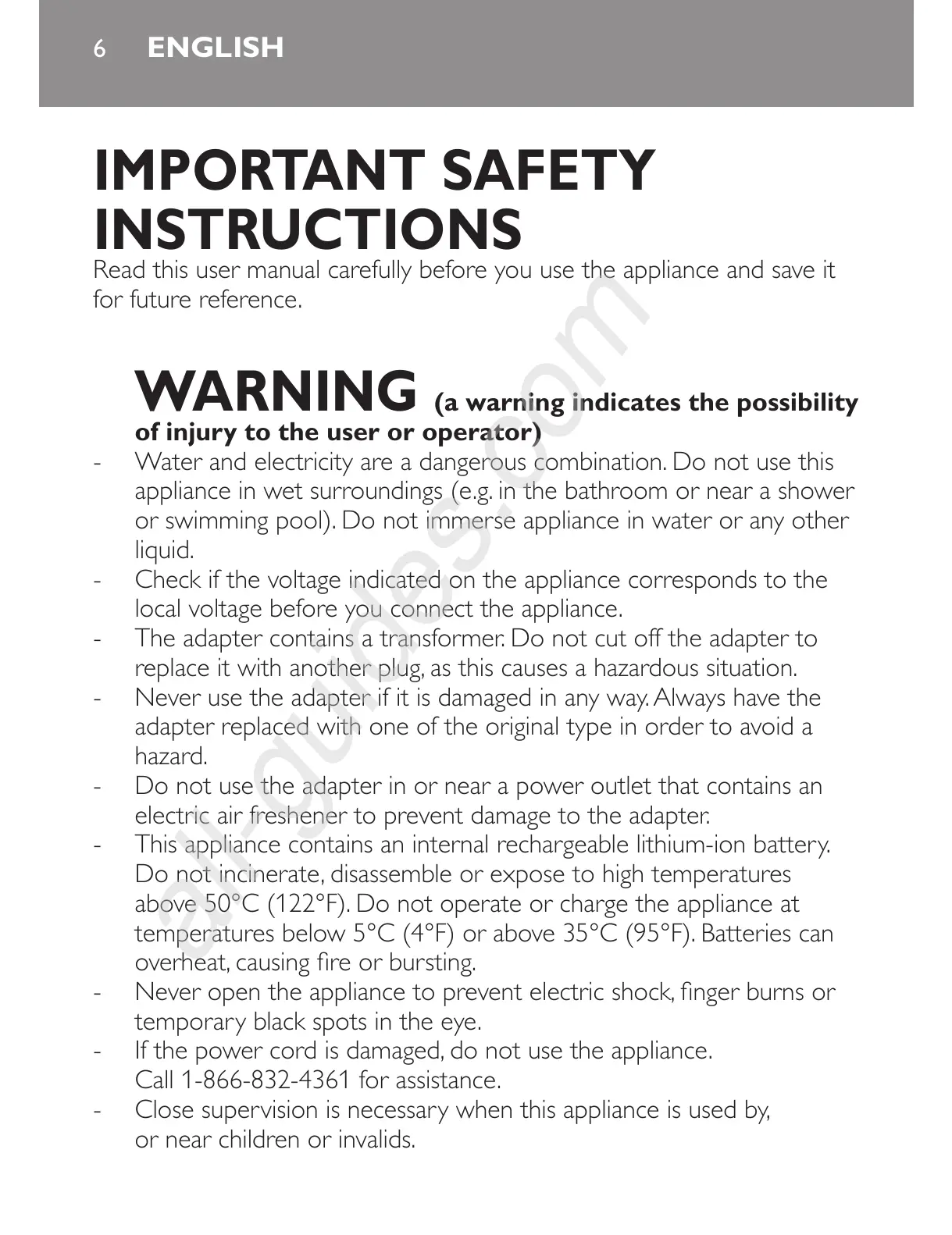 - This appliance contains an internal rechargeable lithium-ion battery.