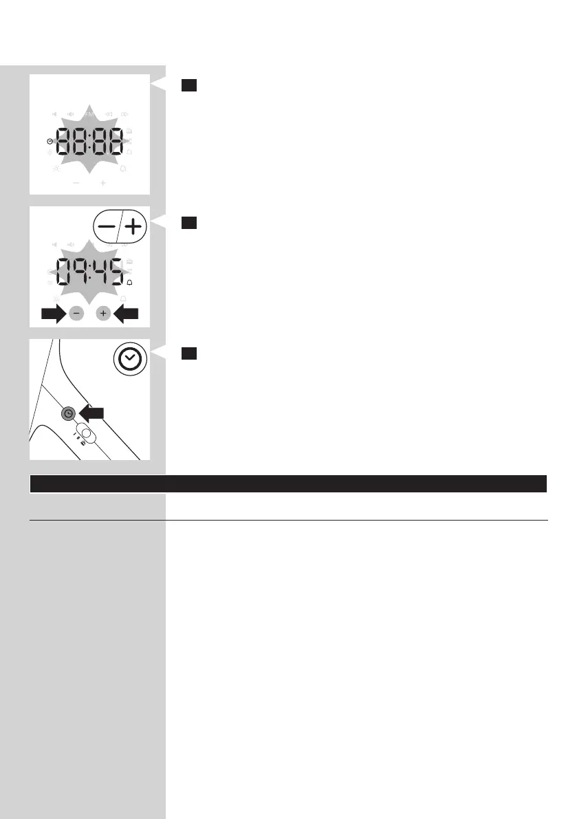 3 Appuyez sur le bouton + ou - pour régler l’heure et les minutes.