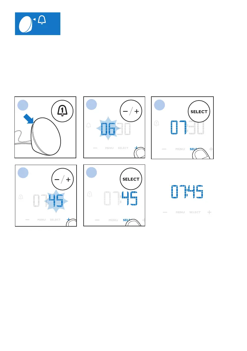 allumez l’alarme, l’heure commence à clignoter; vous pouvez alors la régler, si nécessaire.