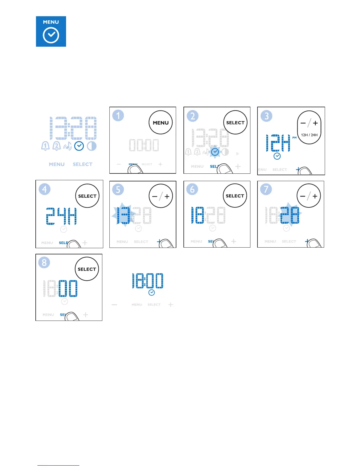 Per impostare l’ora, scegliete tra l’orologio a 12 o a 24 ore e impostate quindi l’ora.