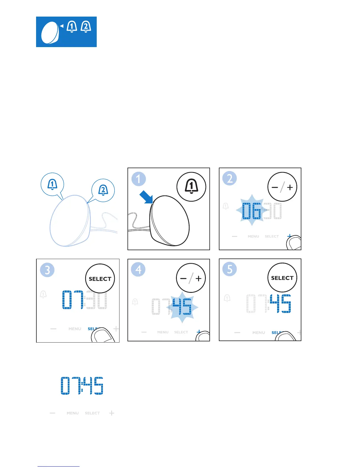 begynner indikatoren for timer å blinke. Hvis det er nødvendig, kan du nå justere alarmtiden.