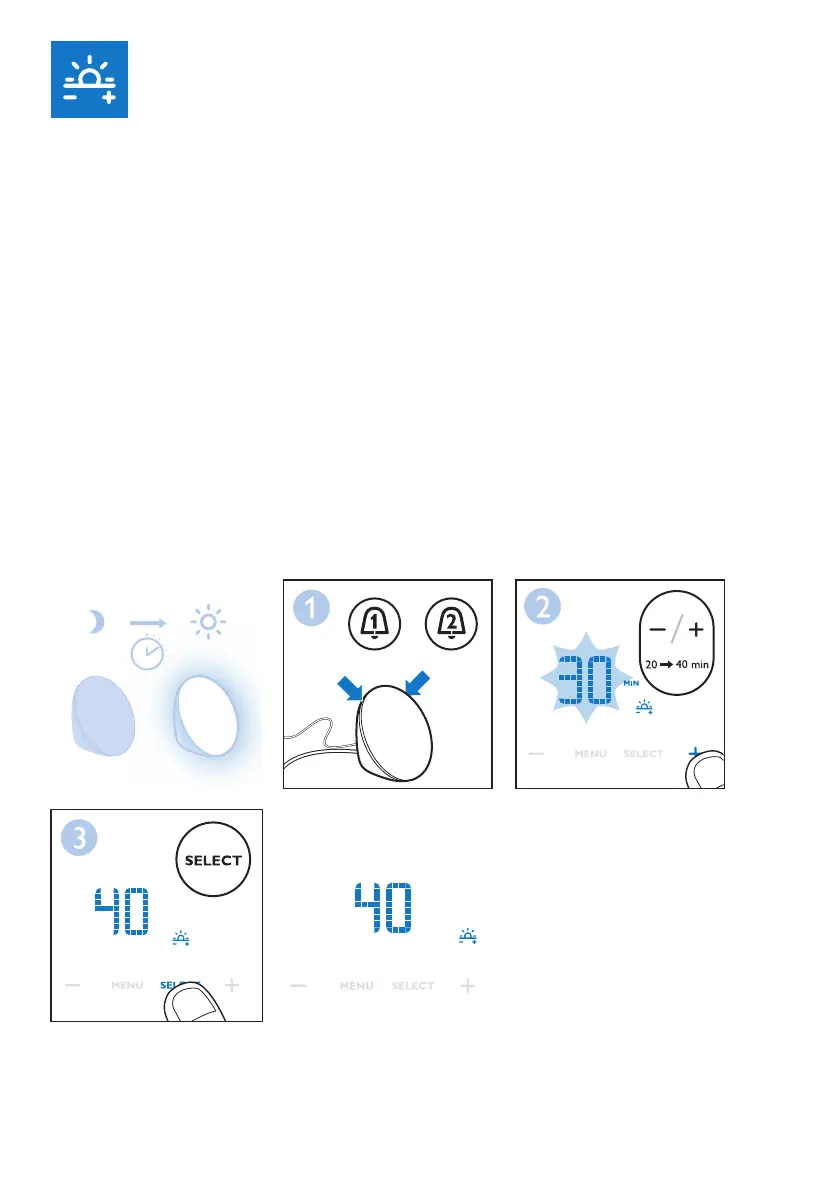set level before the alarm sound is played. The default dawn duration time is 30 minutes, but you can