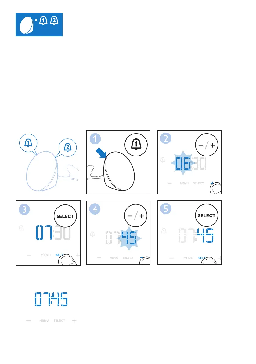 Merk: Hvis du vil justere lysnivået eller volumet du vil våkne til, må