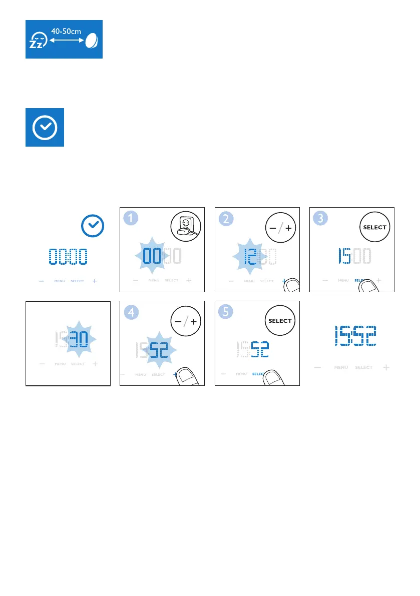 Placera Wake-up Light 40–50 cm från huvudet, t.ex. på nattduksbordet.