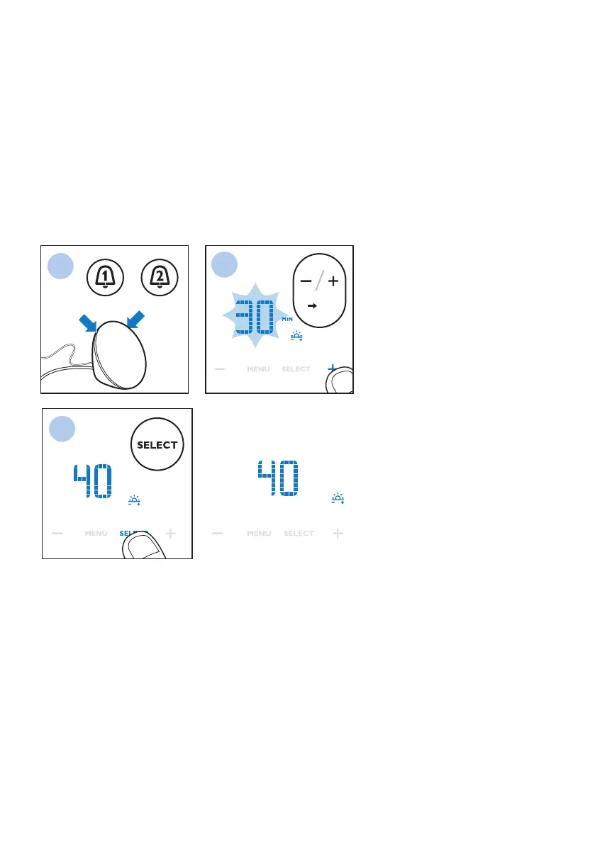 3 Presione el botón + y - para congurar los minutos.