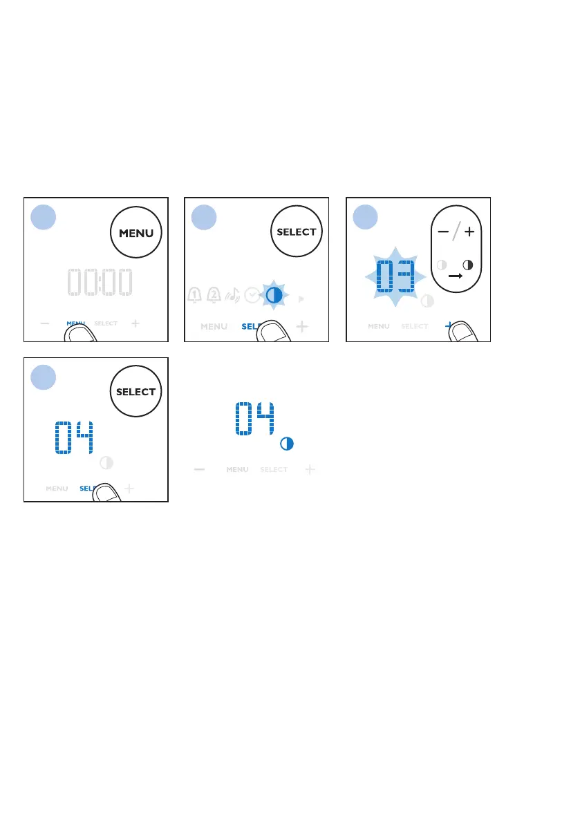 Vous pouvez régler le niveau de luminosité de l’achage entre0 (éteint) et4. Nous vous conseillons de