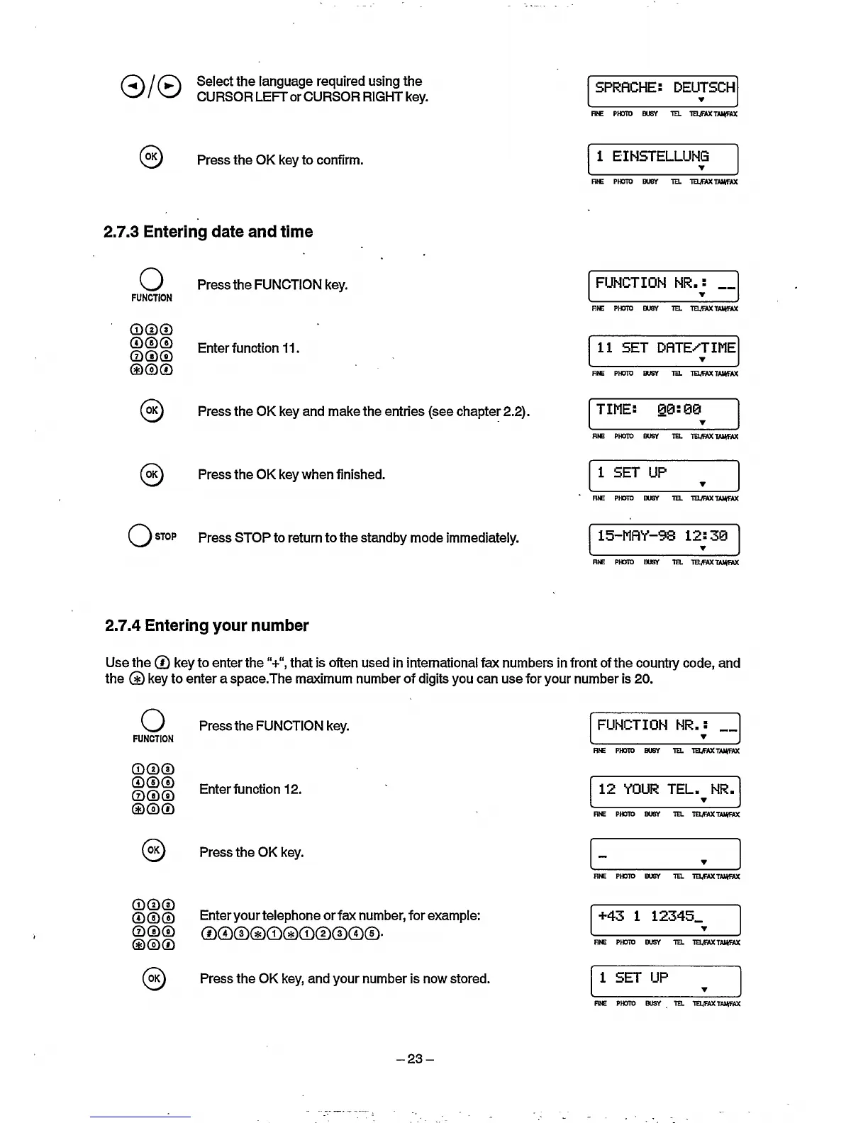 Philips HFC 22 - Entering Date and Time; Entering Your Number