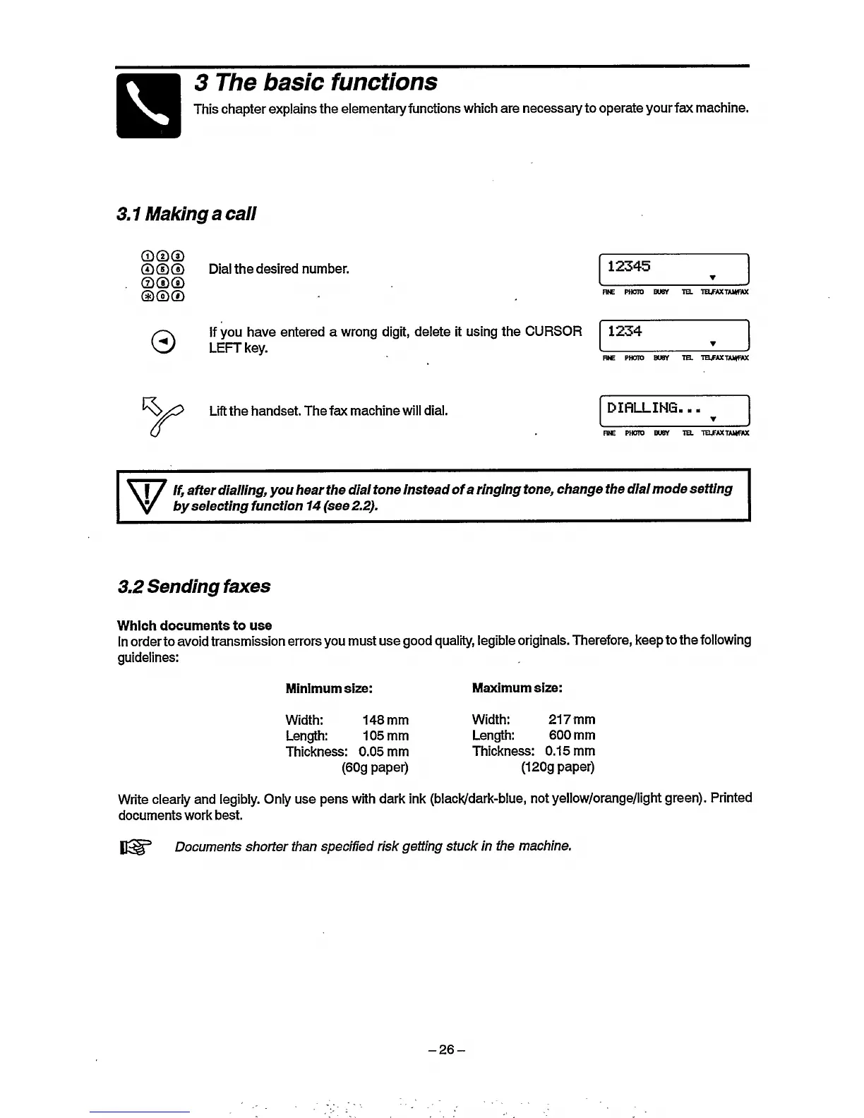 Philips HFC 22 - The Basic Functions; Making a Call; Sending Faxes; Which Documents to Use
