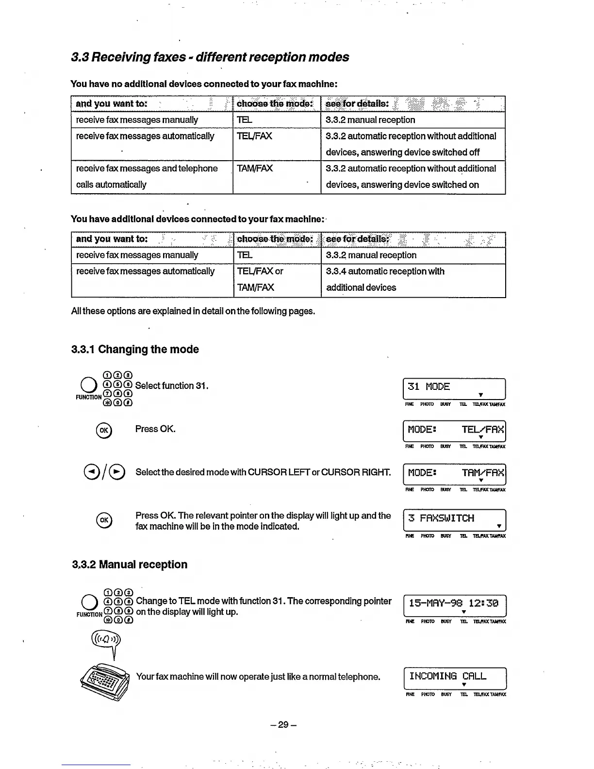 Philips HFC 22 - Receiving Faxes - Different Reception Modes; Changing the Mode; Manual Reception