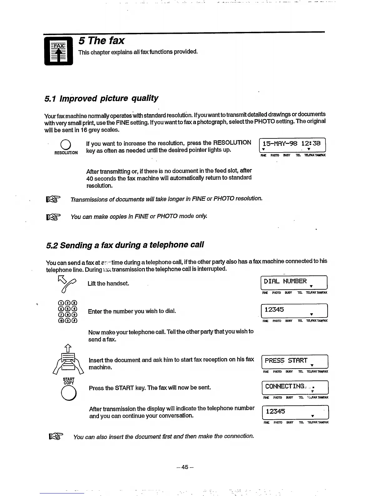 Philips HFC 22 - The Fax; Improved Picture Quality; Sending a Fax During a Telephone Call