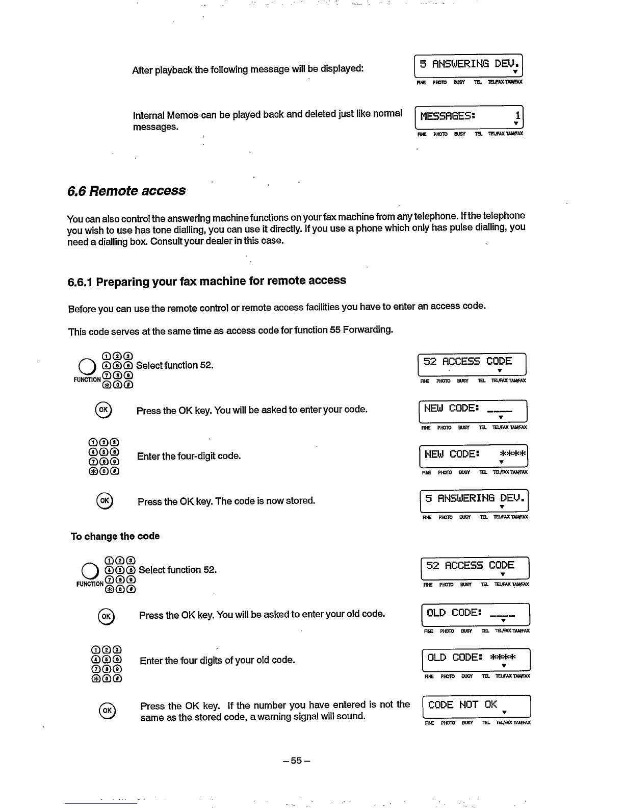 Philips HFC 22 - Remote Access; Preparing Your Fax Machine for Remote Access; To Change the Code