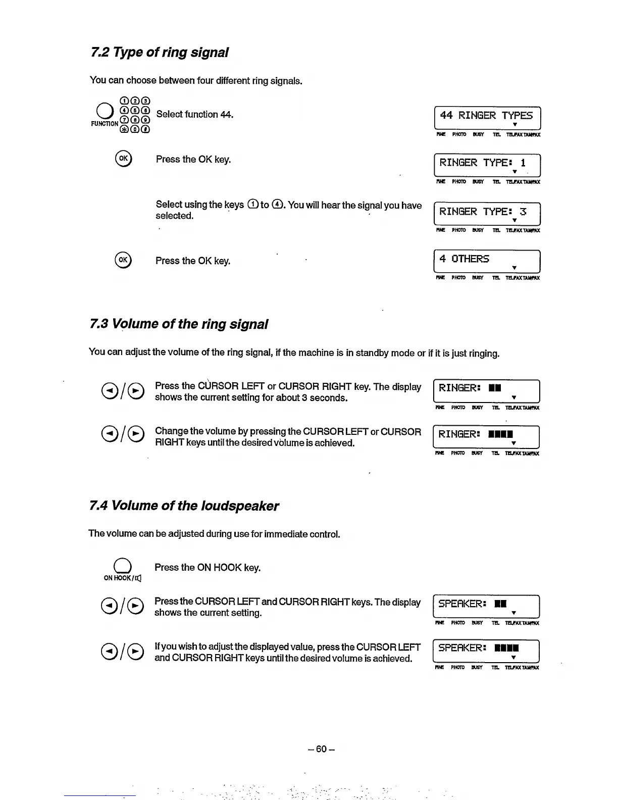 Philips HFC 22 - Type of Ring Signal; Volume of the Ring Signal; Volume of the Loudspeaker