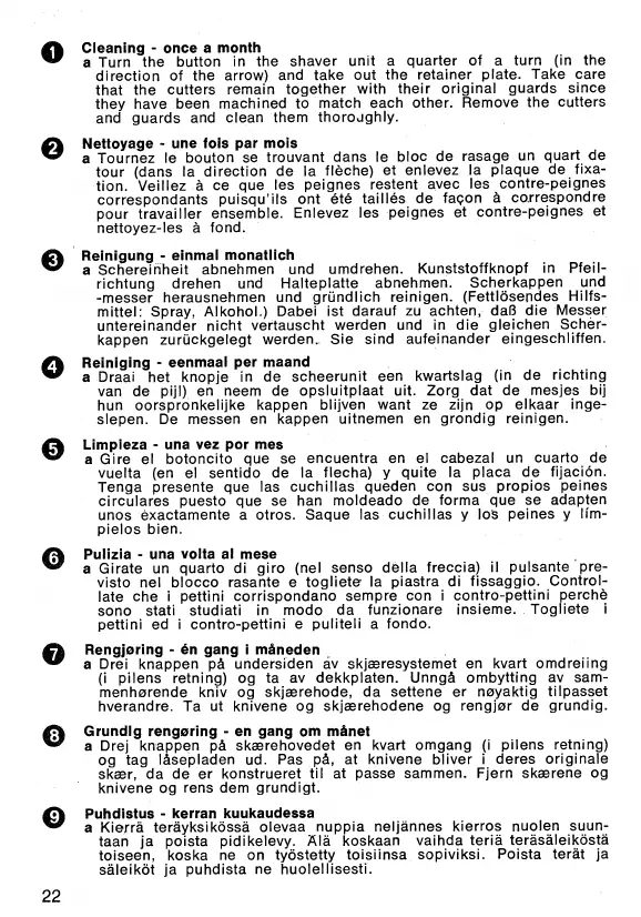 unos exactamente a otros. Saque las cuchillas y loS peines y lim-