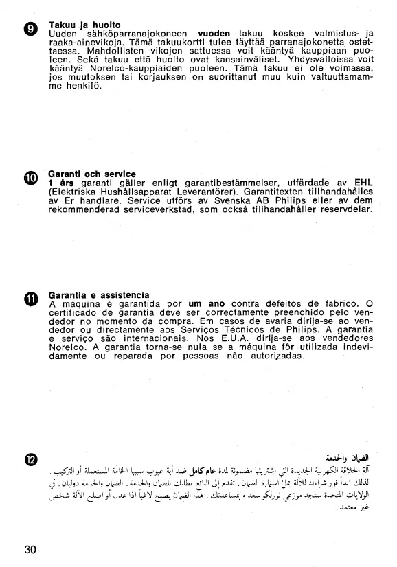 kaantya Norelco-kauppiaiden puoleen. Tama takuu ei ole voimassa,