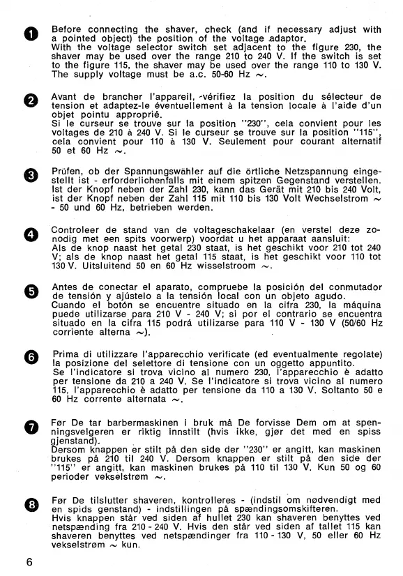 shaver may be used over the range 210 to 240 V. If the switch is set