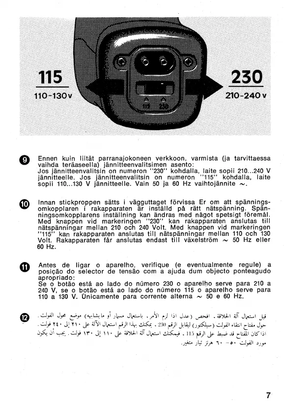 Jos jannitteenvalitsin on numeron "230" kohdalla, laite sopii 210...240 V