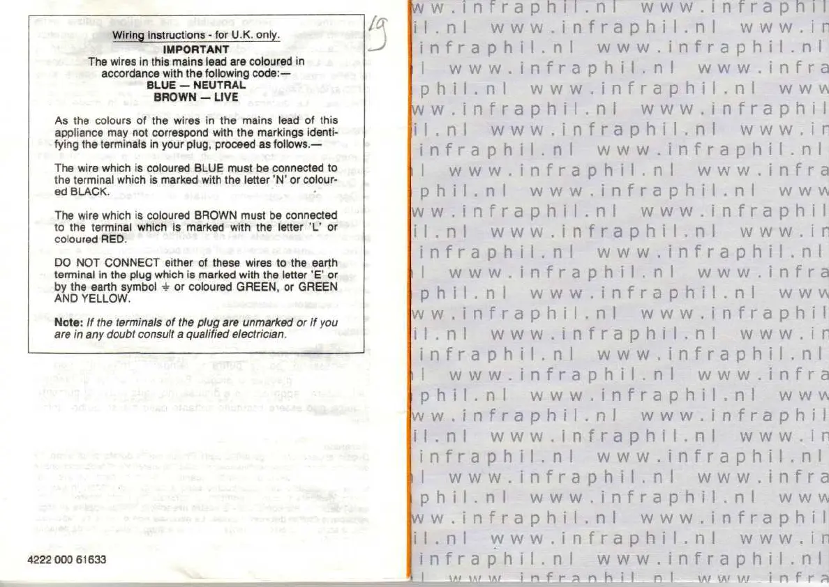 Philips HP 3610 - Wiring Instructions; UK Mains Lead Wiring