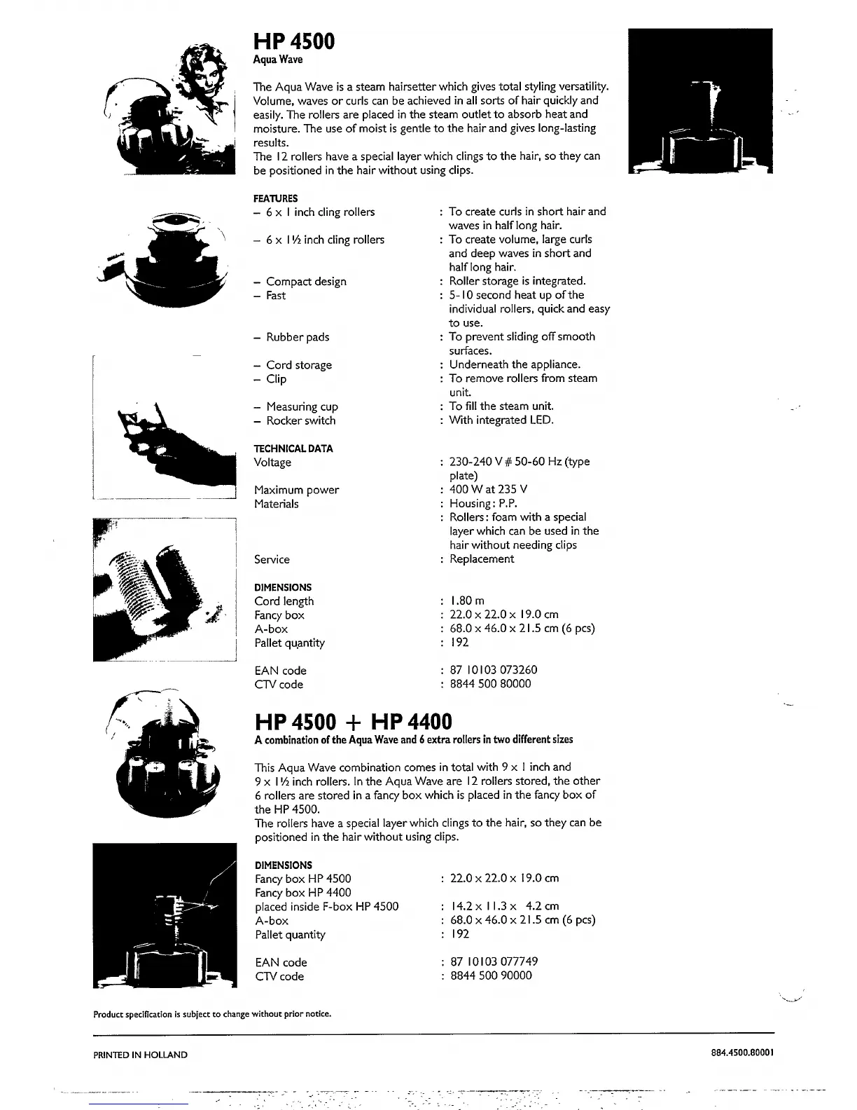 Philips HP4500/90 - HP 4500 Aqua Wave Product Overview; Product Features; Technical Specifications; Service and Packaging Details