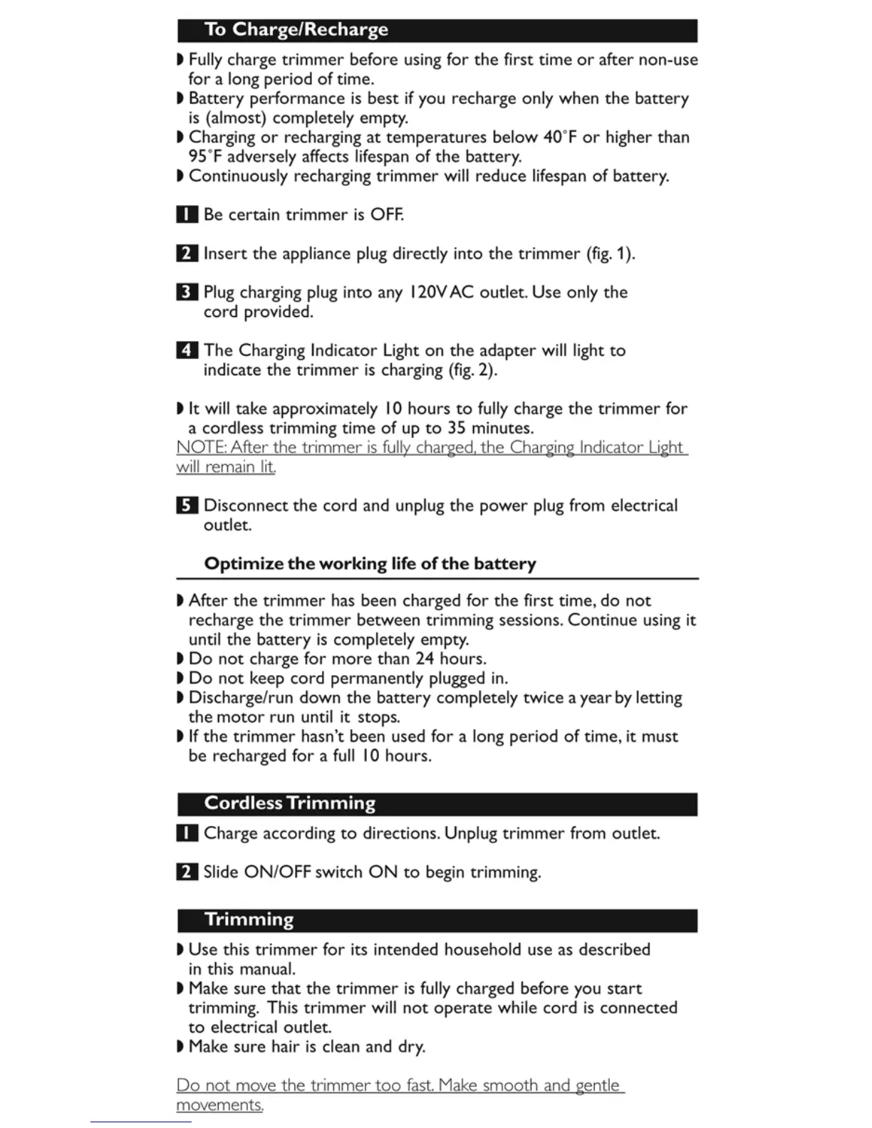 Philips HP6378 - Charging and Trimming Operations; Charging and Battery Optimization; Cordless Trimming Procedures; Trimming Preparation Steps