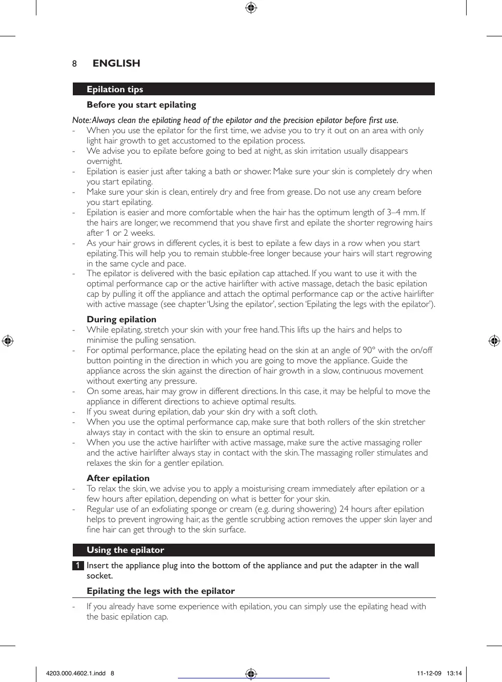 with active massage (see chapter ‘Using the epilator’, section ‘Epilating the legs with the epilator’).
