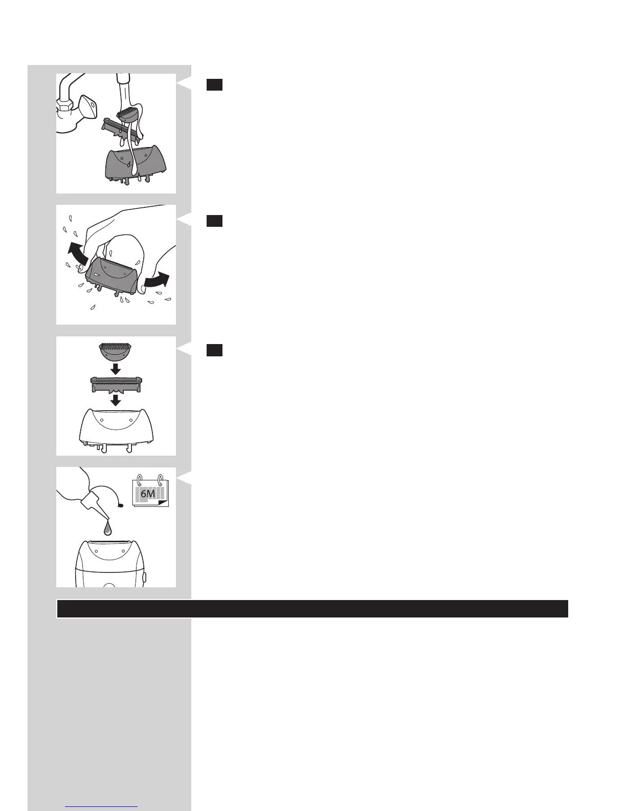 4 Rinse the shaving unit, the shaving head and the comb under a