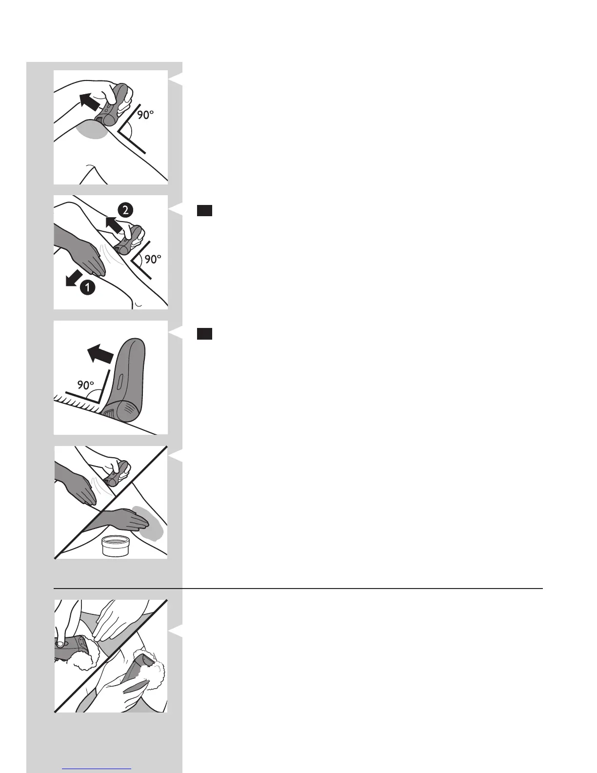 Inclinez la tête d’épilation à un angle de 90° sur la peau avec le