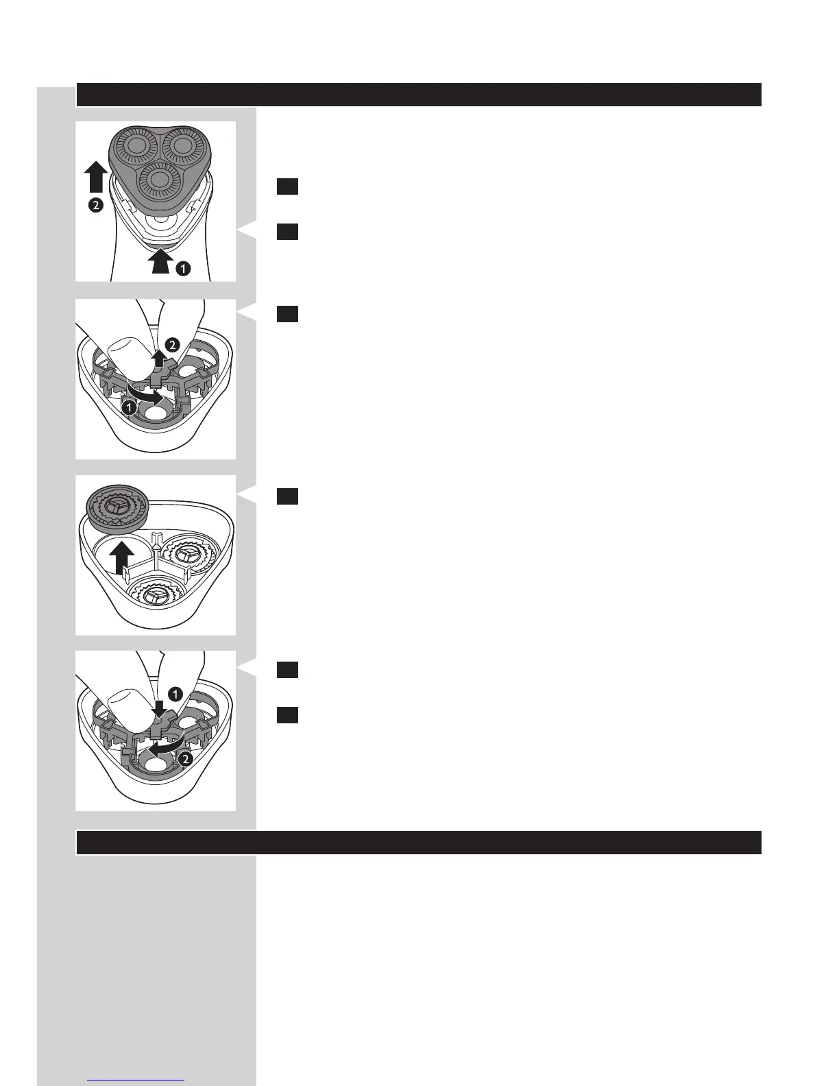 4 Remove the shaving heads and place new ones in the shaving unit.