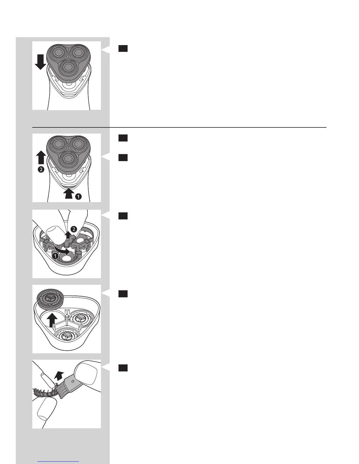 4 Remove the shaving heads (cutters and guards) one by one and clean